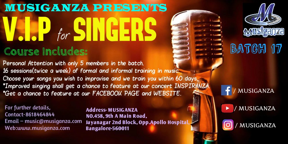 Musiganza is an Music School for both, the young and old to develop their talents in Singing, Guitar, and Keyboard. Started in June 2016 this Music School has always believed that Music can Inspire, Motivate, Push-Limits & Express Emotions more than just Entertainment to people. This Music School focuses on an individual's unique style and talent.